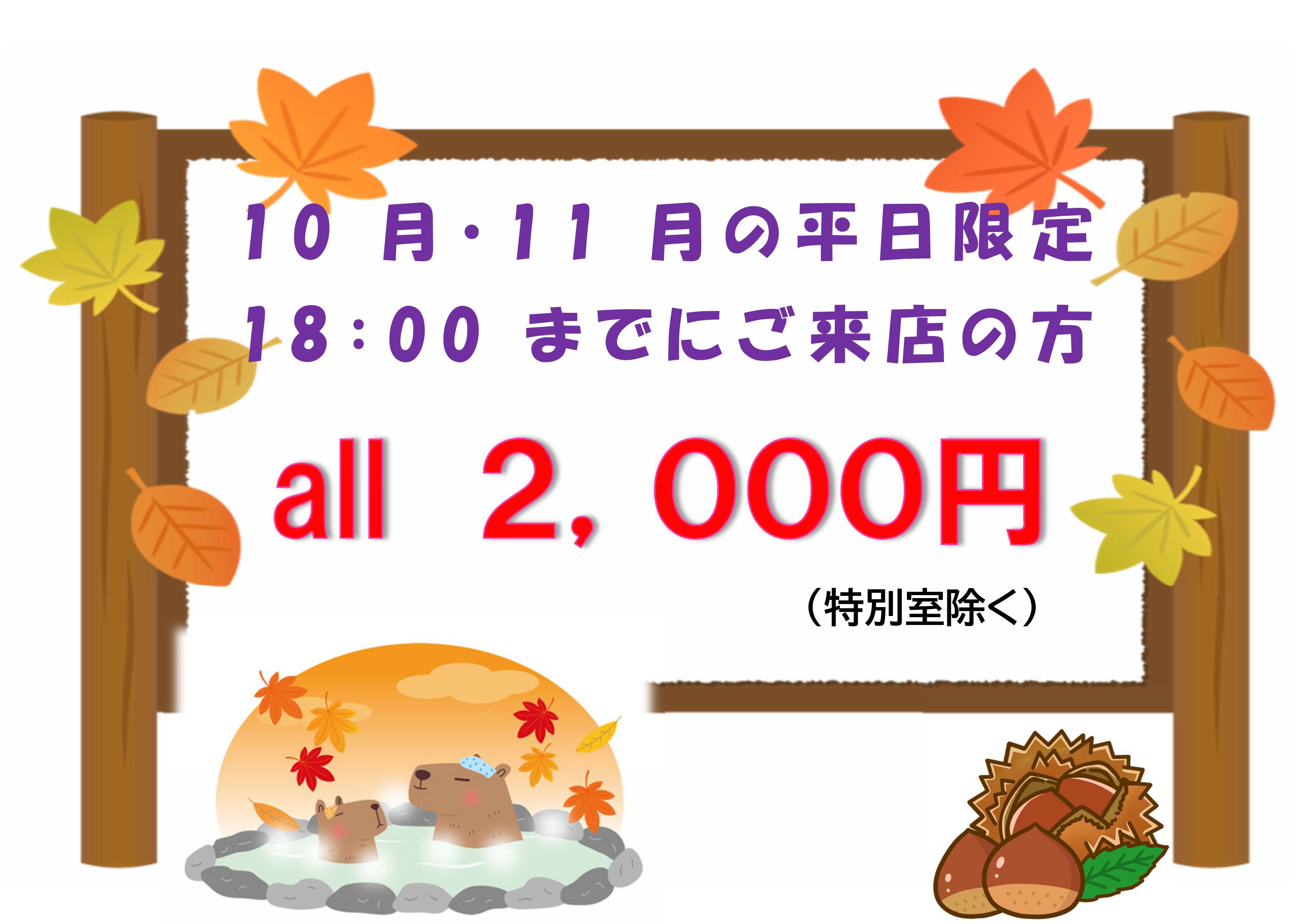 | 土・日・祝日 AM11:00~PM:10:00(最終受付) |